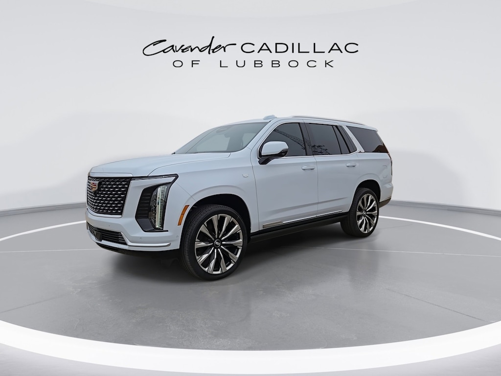 Welcome to Cavender Cadillac of Lubbock, a Cavender Auto Family dealership. This vehicle is located at 1210 19th St, Lubbock, TX 79401. Here at Cavender, we build relationships based on trust and integrity to exceed your expectations in your ownership experience. Quite simply, we strive to Make Confidence Happen! So stop by and allow us to serve your automotive needs; we would love to meet you.Vibrant White 2026 Cadillac Escalade Luxury 4WD 6.2L V8 10-Speed Automatic with OverdriveFeatures: 3rd Row All-Weather Floor Liner Package, Floor Liner Package (1st and 2nd Rows All-Weather Floor Liners and Integrated Cargo Liner), Preferred Equipment Group 1SB (2-Speed Active Transfer Case, Blind Zone Steering Assist with Trailering, Door Lock and Latch Shields, Electronic Limited-Slip Differential, Glass Breakage Sensor, Heated and Ventilated Driver and Front Passenger Seats, Hitch Guidance with Hitch View, Illuminating Front and Rear Sill Plates, Integrated Trailer Brake Controller, Magnetic Ride Control Suspension, Power Panoramic Tilt-Sliding Sunroof, Power-Retractable Assist Steps, Reconfigurable Full-Color Head-Up Display, Smart Trailer Integration Indicator, Theft-Deterrent Alarm System, Trailering App, Trailering Assist Guidelines, Vehicle Inclination Sensor, Vehicle Interior Movement Sensor, Wheel Locks, and Wheels: 22 9-Spoke Alloy with Polished Finish), Touring Package (Air Ride Adaptive Suspension, Power Open/Close Doors, and Soft Closing Front and Rear Doors), 4WD, Brandy With Very Dark Atmosphere Accents Leather, 2-Presets Memory For Driver Seat Adjuster, 21 Speakers, 3.23 Axle Ratio, 3rd row seats: split-bench, 4-Way Power Driver Lumbar Seat Adjuster, 4-Way Power Front Passenger Lumbar Seat Adjuster, 4-Wheel Disc Brakes, 8-Way Power Driver Seat Adjuster, 8-Way Power Front Passenger Seat Adjuster, ABS brakes, Adaptive suspension, Air Conditioning, AKG Studio 21-Speaker Audio System, Alloy wheels, AM/FM radio: SiriusXM with 360L, Apple CarPlay/Android Auto, Audio memory, Auto High-beam Headlights, Auto tilt-away steering wheel, Auto-dimming door mirrors, Auto-dimming Rear-View mirror, Automatic temperature control, Bluetooth Headphones by AKG, Brake assist, Bumpers: body-color, Compass, Delay-off headlights, Driver door bin, Driver vanity mirror, Dual front impact airbags, Dual front side impact airbags, Electronic Stability Control, Emergency communication system: OnStar Services capable, Exterior Parking Camera Rear, Four wheel independent suspension, Front anti-roll bar, Front Bucket Seats, Front Center Armrest w/Storage, Front dual zone A/C, Front License Plate Bracket, Front reading lights, Fully automatic headlights, Garage door transmitter, Heads-Up Display, Heated door mirrors, Heated Driver and Front Passenger Seats, Heated front seats, Heated rear seats, Heated steering wheel, Illuminated entry, Knee airbag, Lane Departure Warning System, Leather Seating Surfaces with Precision Perforated Inserts, Low tire pressure warning, Memory seat, Navigation System, Occupant sensing airbag, Outside temperature display, Overhead airbag, Overhead console, Panic alarm, Passenger door bin, Passenger vanity mirror, Power door mirrors, Power driver seat, Power Liftgate, Power moonroof, Power passenger seat, Power steering, Power windows, Radio data system, Radio: Infotainment Experience, Rain sensing wipers, Rear air conditioning, Rear anti-roll bar, Rear reading lights, Rear Seat Entertainment System, Rear window defroster, Rear window wiper, Remote keyless entry, Security system, SiriusXM with 360L Trial Subscription, Speed control, Split folding rear seat, Spoiler, Sport Pedal Cover Kit, Steering wheel memory, Steering wheel mounted audio controls, Tachometer, Telescoping steering wheel, Tilt steering wheel, Traction control, Trip computer, Turn signal indicator mirrors, Variably intermittent wipers, Ventilated front seats, Voltmeter, Wheels: 24 10-Spoke Alloy, and Wireless Apple CarPlay/Wireless Android Auto.