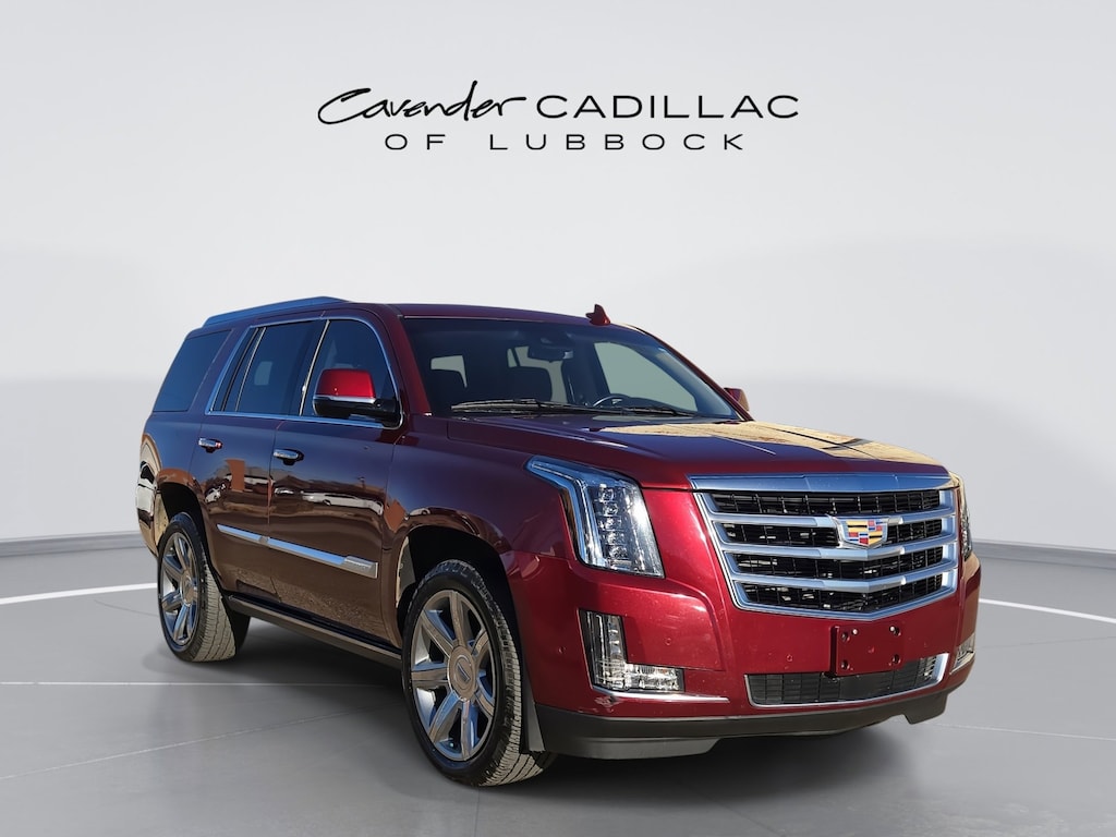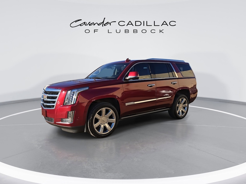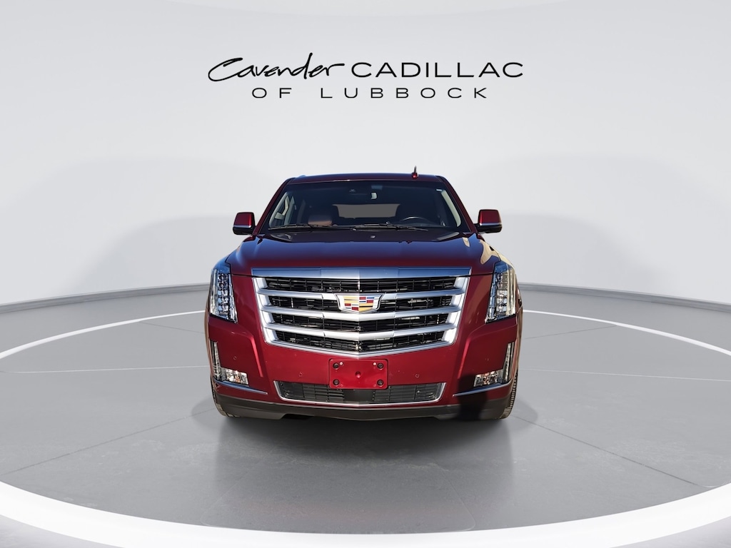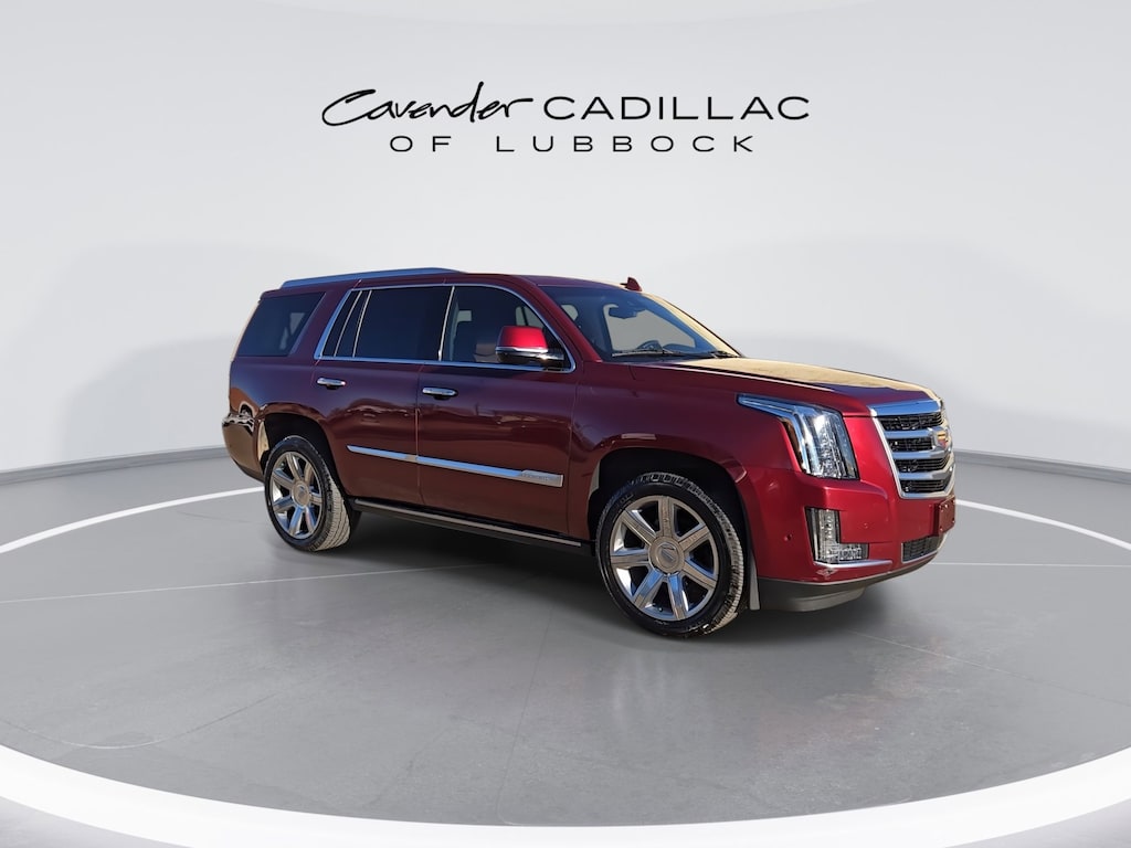 Welcome to Cavender Cadillac of Lubbock, a Cavender Auto Family dealership. This vehicle is located at 1210 19th St, Lubbock, TX 79401. Here at Cavender, we build relationships based on trust and integrity to exceed your expectations in your ownership experience. Quite simply, we strive to Make Confidence Happen! So stop by and allow us to serve your automotive needs; we would love to meet you.Red Passion Tintcoat 2018 Cadillac Escalade Premium Luxury 4WD 6.2L Variable Valve Timing V8 SIDI 10-Speed Automatic with OverdriveFeatures: All-Weather Floor Liner Package (LPO), Driver Assist Package (Adaptive Full-Speed Range Cruise Control, Automatic Safety Belt Tightening, Electronic Powered Parking Brake, and Forward/Reverse Automatic Braking), Preferred Equipment Group 1SC (Forward Collision Alert, Illuminated Door Handles, IntelliBeam Automatic High Beam On/Off, Lane Change Alert w/Side Blind Zone Alert, Lane Keep Assist w/Lane Departure Warning, Power Tilt-Sliding Sunroof w/Express-Open/Close, Rear Camera Mirror, Rear Camera Washer, Rear Cross-Traffic Alert, Rear Seat Entertainment System, Reconfigurable 4-Color Head-Up Display, Safety Alert Seat, Second Row Bucket Seats, and VAC Power 17 Disc Brakes), Theft-Deterrent Package (Inclination Sensor, Theft-Deterrent Alarm System, and Vehicle Interior Movement Sensor), 4WD, Kona Brown With Jet Black Accents Leather, 12-Way Power Front Passenger Seat Adjuster, 16 Speakers, 2-Position Memory For Driver's Seat Adjuster, 3.23 Axle Ratio, 3rd row seats: split-bench, 4-Wheel Disc Brakes, A/V remote, ABS brakes, Adaptive suspension, Adjustable pedals, Air Conditioning, Alloy wheels, AM/FM radio: SiriusXM, Apple CarPlay/Android Auto, Auto High-beam Headlights, Auto tilt-away steering wheel, Auto-dimming door mirrors, Auto-leveling suspension, Automatic temperature control, Black Front License Plate Bracket, Bodyside moldings, Bose Centerpoint 16 Speaker Surround Sound System, Brake assist, Bumpers: body-color, CD player, Compass, Delay-off headlights, Driver door bin, Driver vanity mirror, Dual front impact airbags, Dual front side impact airbags, DVD-Audio, Electronic Stability Control, Emergency communication system: OnStar and Cadillac connected services capable, Exterior Parking Camera Rear, Front anti-roll bar, Front Bucket Seats, Front Center Armrest w/Storage, Front dual zone A/C, Front reading lights, Front wheel independent suspension, Fully automatic headlights, Garage door transmitter, HD Radio, Headphones, Heads-Up Display, Heated & Cooled Front Bucket Seats, Heated door mirrors, Heated front seats, Heated rear seats, Heated steering wheel, Illuminated entry, Leather Seating Surfaces, Leather Shift Knob, Leather steering wheel, Low tire pressure warning, Magnetic Ride Control Suspension, Memory seat, Navigation System, NavTraffic, Occupant sensing airbag, Outside temperature display, Overhead airbag, Overhead console, Panic alarm, Passenger door bin, Passenger vanity mirror, Pedal memory, Power door mirrors, Power driver seat, Power Liftgate, Power moonroof, Power passenger seat, Power steering, Power windows, Power-Retractable Assist Steps, Radio data system, Radio: AM/FM Cadillac User Experience w/Nav, Rain sensing wipers, Rear air conditioning, Rear anti-roll bar, Rear audio controls, Rear reading lights, Rear window defroster, Rear window wiper, Remote keyless entry, Roof rack: rails only, Security system, SiriusXM Satellite Radio, Speed control, Split folding rear seat, Spoiler, Steering wheel memory, Steering wheel mounted audio controls, Tachometer, Telescoping steering wheel, Tilt steering wheel, Traction control, Trip computer, Turn signal indicator mirrors, Variably intermittent wipers, Ventilated front seats, Wheel Locks, and Wheels: 22 x 9 7-Spoke Aluminum w/Premium Paint.Odometer is 3791 miles below market average! CARFAX One-Owner.